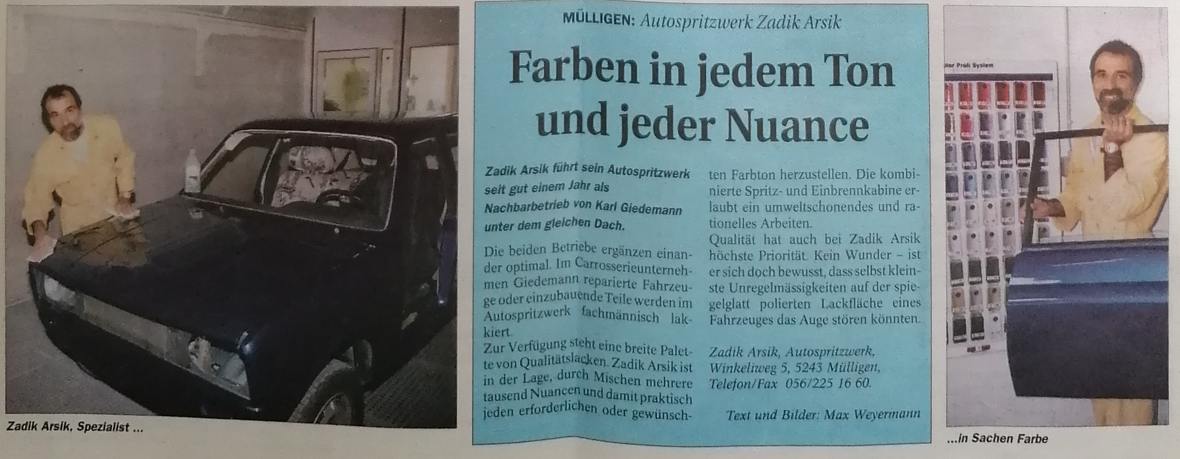 Besuchen Sie die ARS Spritzwerk + Carrosserie GmbH in Spreitenbach – hier kümmere ich mich seit Juli 1995 um Ihre Carrosseriearbeiten
